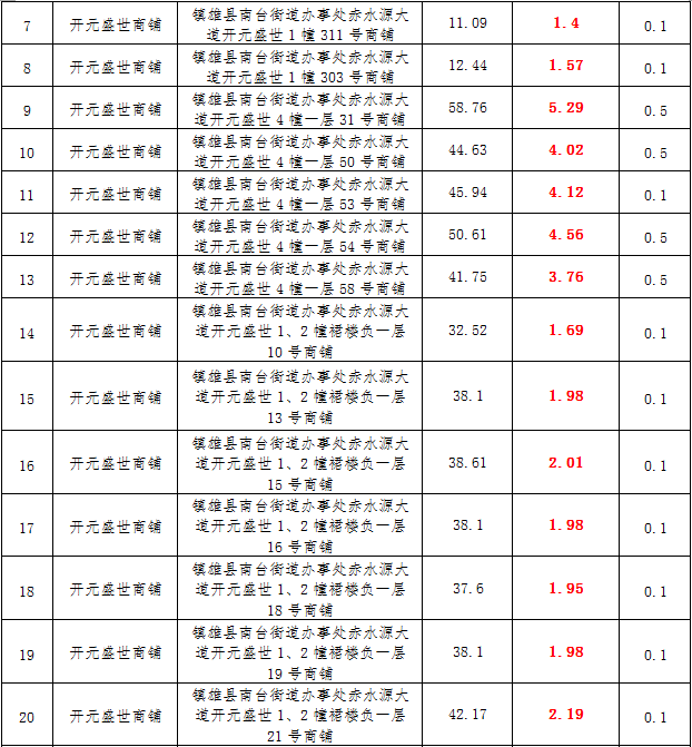 (一)拍租鎮(zhèn)雄發(fā)展集團(tuán)有限公司國(guó)有門面3年期使用權(quán),詳見下表: